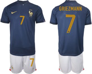 Moški Nogometni dresi kompleti Francija Domači SP 2022 Kratek Rokav + Kratke hlače GRIEZMANN 7