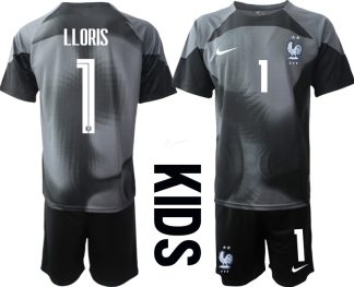 Otroški Nogometni dresi kompleti Francija Vratar Gostujoči SP 2022 Kratek Rokav + Kratke hlače LLORIS 1