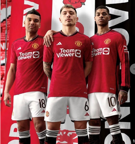 Novi logotip TeamViewer se nahaja na sredini dresa Manchester Uniteda 2023-2024 v gosteh, tako kot domači in tretji komplet.
