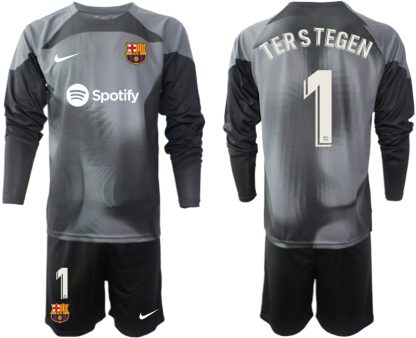 Moški FC Barcelona Vratar Domači 2023 Dolgi Nogometni Dresi Kompleti TERSTEGEN 1