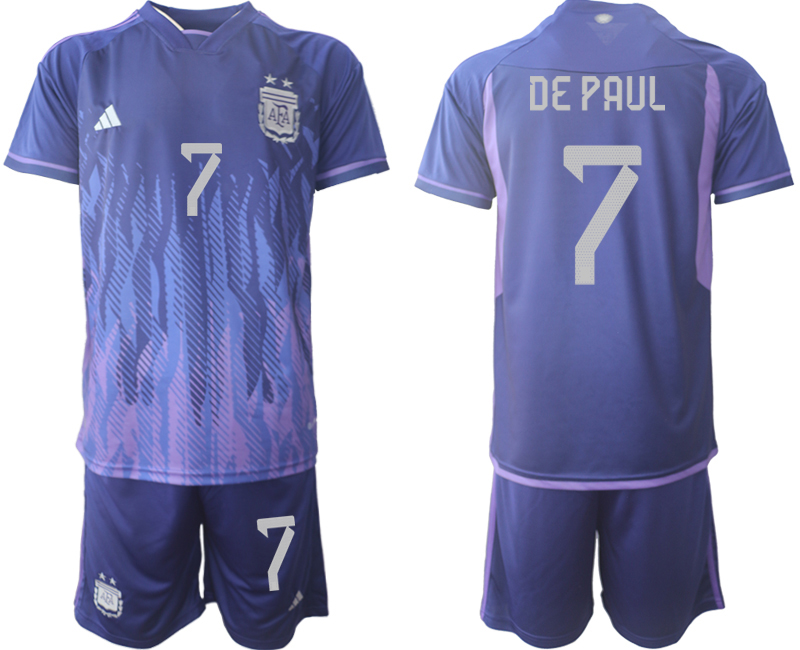 Moški Nogometni dresi Argentina Gostujoči SP 2022 Kratek Rokav + Kratke hlače DE PAUL 7