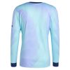 Dresi Arsenal Tretji 2024-25 so narejene iz vrhunskih materialov in so udobne in vzdržljive, zaradi česar so odlična izbira za intenzivne tekme na igrišču ali navijanje vaše ekipe s tribune. Navpične rdeče-bele črte na črni podlagi spominjajo na tradicionalne barve kluba. Logotip je lepo nameščen na prsih, medtem ko je logotip Arsenala na rokavih. Prefinjeni in elegantni detajli kažejo na vašo podporo tej legendarni ekipi. Oprijeto prileganje popolnoma sledi obrisom telesa in igralcem zagotavlja optimalno svobodo gibanja.