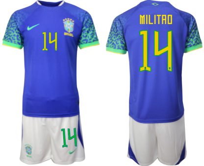 Moški Nogometni dresi Brazilija Gostujoči SP 2022 Kratek Rokav + Kratke hlače MILITAO 14