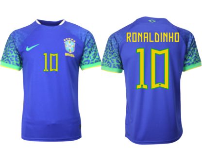Moški Nogometni dresi Brazilija Gostujoči SP 2022 Kratek Rokav RONALDINHO 10