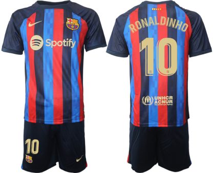 Moški Nogometni dresi FC Barcelona Domači 2023 Kratek Rokav + Kratke hlače RONALDINHO 10