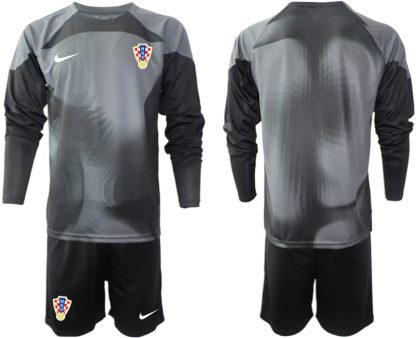 Moški Nogometni dresi Hrvaška Vratar Domači SP 2022 Dolgi Rokav + Kratke hlače