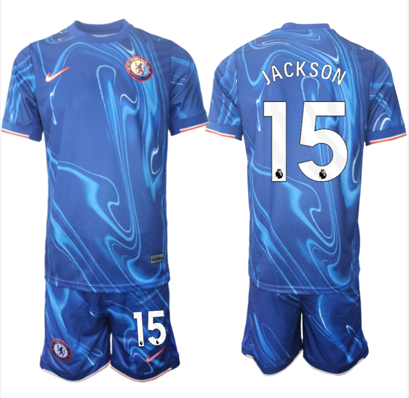 Moški Nogometni dresi kompleti Chelsea Domači 2024-25 modra Kratek Rokav + Kratke hlače Nicolas Jackson 15