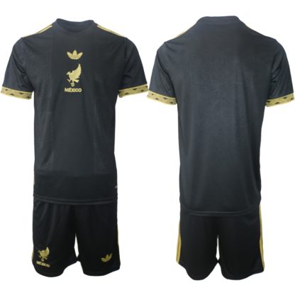 Praznujte zlato kulturo Mehike tako, da svoje oblečete v Mehiški dres 2025 “Mexico De Oro”. Nogometni dres Mehike ima drzno črno osnovo z bleščicami svetleče zlate barve, ki je v kontrastu s tradicionalnimi mehiškimi barvami. Trolistni logotip na dresu simbolizira srečo in zmago. Dizajni so navdihnjeni z obleko mariachi in odražajo edinstvene sloge umetnikov mariachija, priljubljene mehiške glasbene zvrsti.
