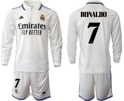 Moški Nogometni dresi Real Madrid Domači 2023 Dolgi Rokav + Kratke hlače RONALDO 7