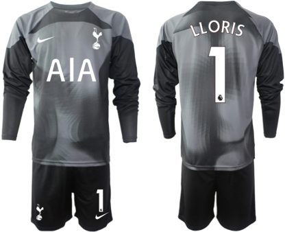 Moški Nogometni dresi Tottenham Hotspur Črna Vratar Domači 2023 Dolgi Rokav + Kratke hlače LLORIS 1