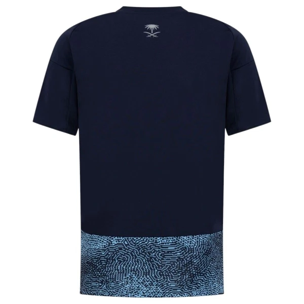 Zgornji del hrbta je preproste temno modre barve, s palmo in mečem Saudove Arabije pod ovratnikom, vzorec nočnega neba pa se vrača na spodnji rob.