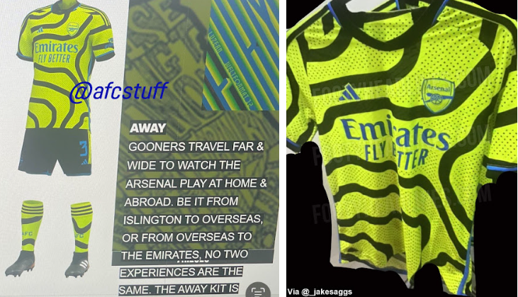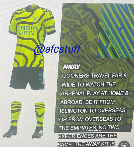 Glede na račun Arsenalovega dresa @ACL_Soccer bo gostujoči dres Arsenala za sezono 2023–2024 predstavljen med klubsko turnejo po ZDA leta 2023 (od sredine do konca julija 2023). Arsenal svojo turnejo po ZDA začne s tekmo proti MLS All-Stars 19. julija.