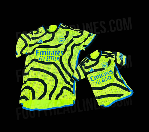 Uradne barve gostujoče majice adidas Arsenal 2023-24 so ‘Team Semi Solar Yellow/Black’. Natančno ime odtenka modre ni znano.