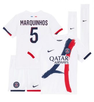 Otroški Nogometni dresi Marquinhos #5 Paris Saint-Germain PSG Gostujoči 2025-26 bela