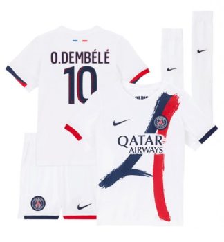 Otroški Nogometni dresi Ousmane Dembele #10 Paris Saint-Germain PSG Gostujoči 2025-26 bela