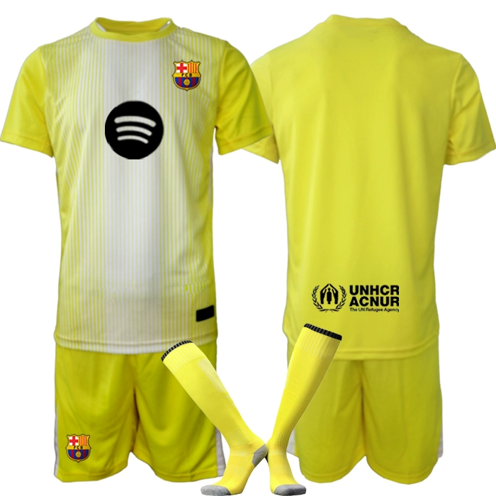 Nogometni dresi za otroke FC Barcelona Vratar rumena 2025-26 z lastnim tiskom