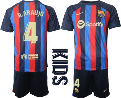 Otroški Nogometni dresi Barcelona Domači 2023 Kratek Rokav + Kratke hlače R.ARAUJO 4