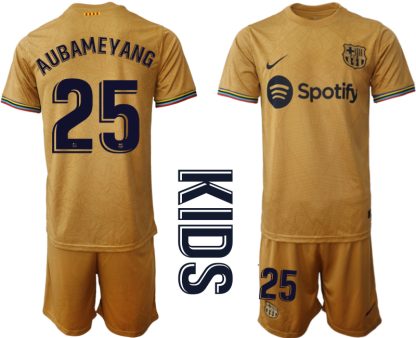Otroški Nogometni dresi Barcelona Gostujoči 2023 Kratek Rokav + Kratke hlače AUBAMEYANG 25
