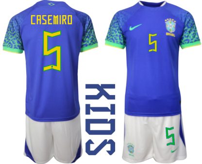 Otroški Nogometni dresi Brazilija Gostujoči SP 2022 Kratek Rokav + Kratke hlače CASEMIRO 5