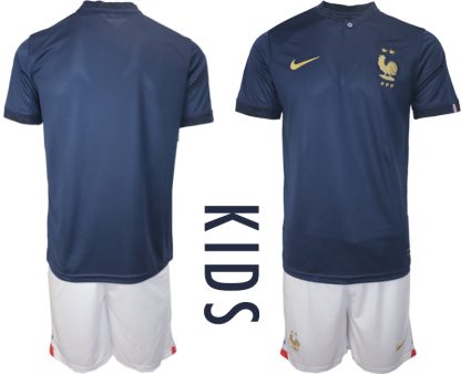 Otroški Nogometni dresi Francija Domači SP 2022 Kratek Rokav + Kratke hlače