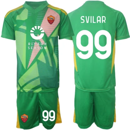Poceni Otroški Nogometni dresi kompleti AS Roma Vratar 2024-25 Mile Svilar 99