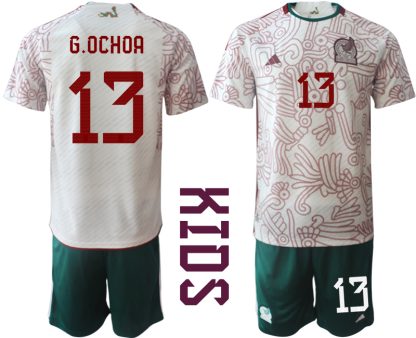 Otroški Nogometni dresi Mehika Gostujoči SP 2022 Kratek Rokav + Kratke hlače G.OCHOA 13