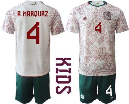 Otroški Nogometni dresi Mehika Gostujoči SP 2022 Kratek Rokav + Kratke hlače R.MARQURZ 4