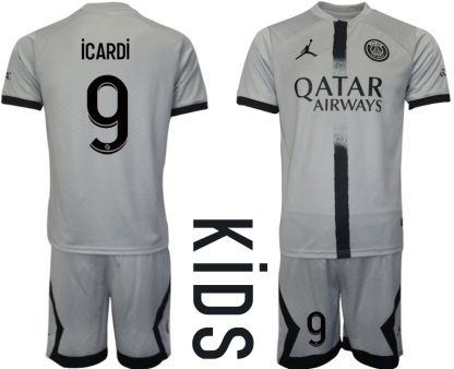 Otroški Nogometni dresi Paris Saint-Germain PSG Gostujoči 2023 Kratek Rokav + Kratke hlače iCARDi 9