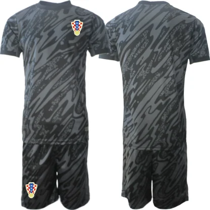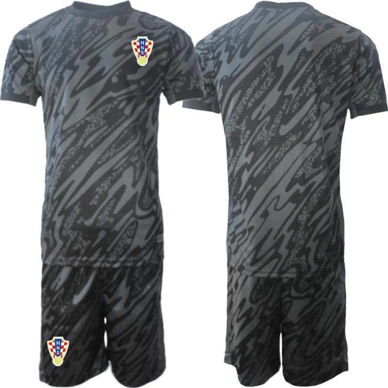 Novo Otroški Nogometni Dresi reprezentance Hrvaška Vratar 2024-25 črna z lastnim imenom