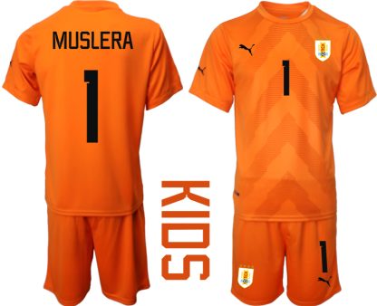 Otroški Nogometni dresi Urugvaj Vratar Gostujoči SP 2022 Kratek Rokav + Kratke hlače MUSLERA 1