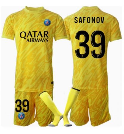 Otroški Nogometni Dresi za otroke Paris Saint-Germain PSG Vratar Tretji 2024-25 rumena Matvei Safonov 39