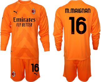 Moški Nogometni dresi kompleti AC Milan Vratar Gostujoči 2023 Dolgi Rokav + Kratke hlače M.MAIGNAN 16