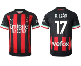 Replika Otroški nogometni dresi kompleti AC Milan Domači 2022-23 Kratek Rokav + Kratke hlače R.Leão 17