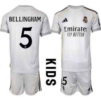Poceni Otroški Nogometni dresi Kompleti Real Madrid Domači 2025-26 Jude Bellingham 5