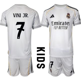 Poceni Otroški Nogometni dresi Kompleti Real Madrid Domači 2025-26 Vinicius Junior 7
