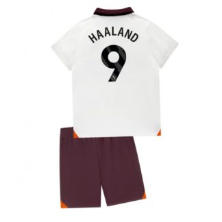 Poceni Otroški Nogometni dresi Manchester City Gostujoči 2023-24 Kratek Rokav + Kratke hlače Erling Haaland 9