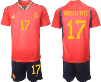 Moški Nogometni dresi Španija Domači SP 2022 Kratek Rokav + Kratke hlače ANSU FATI 17
