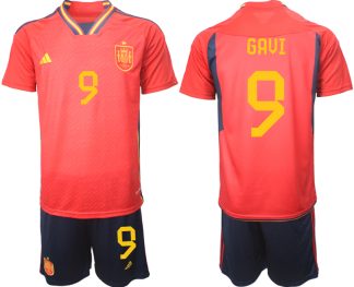 Moški Nogometni dresi Španija Domači SP 2022 Kratek Rokav + Kratke hlače GAVI 9