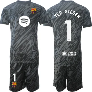 Poceni Moški Nogometni Dresi Kompleti FC Barcelona Vratar 2024-25 črna Marc-Andre ter Stegen 1