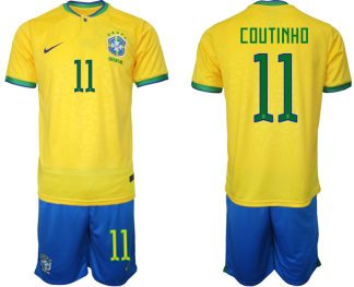 Moški Nogometni dresi Brazilija Domači SP 2022 Kratek Rokav + Kratke hlače COUTINHO 11