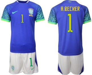 Moški Nogometni dresi Brazilija Gostujoči SP 2022 Kratek Rokav + Kratke hlače A.BECKER 1