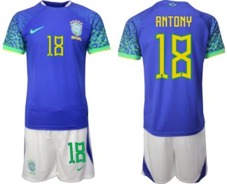 Moški Nogometni dresi Brazilija Gostujoči SP 2022 Kratek Rokav + Kratke hlače ANTONY 18