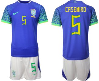 Moški Nogometni dresi Brazilija Gostujoči SP 2022 Kratek Rokav + Kratke hlače CASEMIRO 5