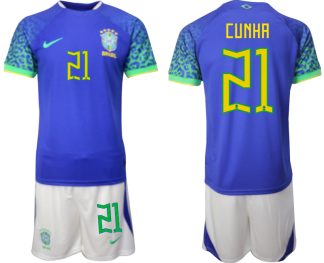 Moški Nogometni dresi Brazilija Gostujoči SP 2022 Kratek Rokav + Kratke hlače CUNHA 21