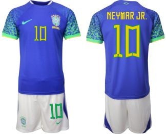 Moški Nogometni dresi Brazilija Gostujoči SP 2022 Kratek Rokav + Kratke hlače NEYMAR JR. 10