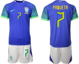 Moški Nogometni dresi Brazilija Gostujoči SP 2022 Kratek Rokav + Kratke hlače PAQUETA 7
