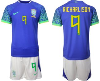 Moški Nogometni dresi Brazilija Gostujoči SP 2022 Kratek Rokav + Kratke hlače RICHARLISON 9