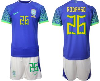 Moški Nogometni dresi Brazilija Gostujoči SP 2022 Kratek Rokav + Kratke hlače RODRYGO 26