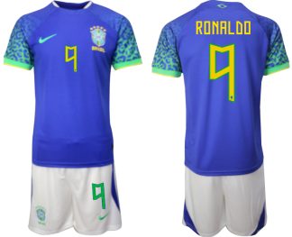 Moški Nogometni dresi Brazilija Gostujoči SP 2022 Kratek Rokav + Kratke hlače RONALDO 9