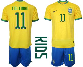 Otroški Nogometna dresi Brazilija Domači SP 2022 Kratek Rokav + Kratke hlače COUTINHO 11
